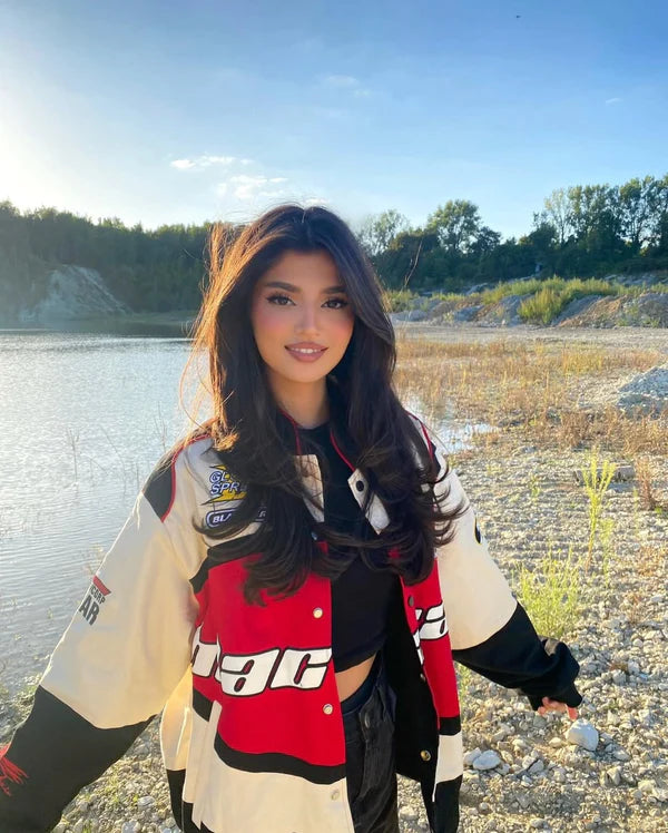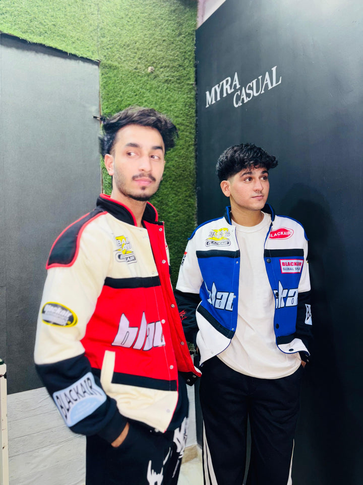 Drop jaws with the fire-red BLACKAIR™ Street Racing Jacket – Red-Cream-Black Edition. Packed with bold oversized branding, authentic embroidered sponsor patches, and high-contrast color blocking, this jacket is built for the spotlight. Premium wind-resistant fabric, snap-button closure, ribbed cuffs, and a relaxed racer fit make it perfect for bike nights, car meets, or just owning the streets of Mumbai. A limited-edition drip piece that screams speed and confidence. Secure yours now before it sells out – exclusively at Myra Casual!